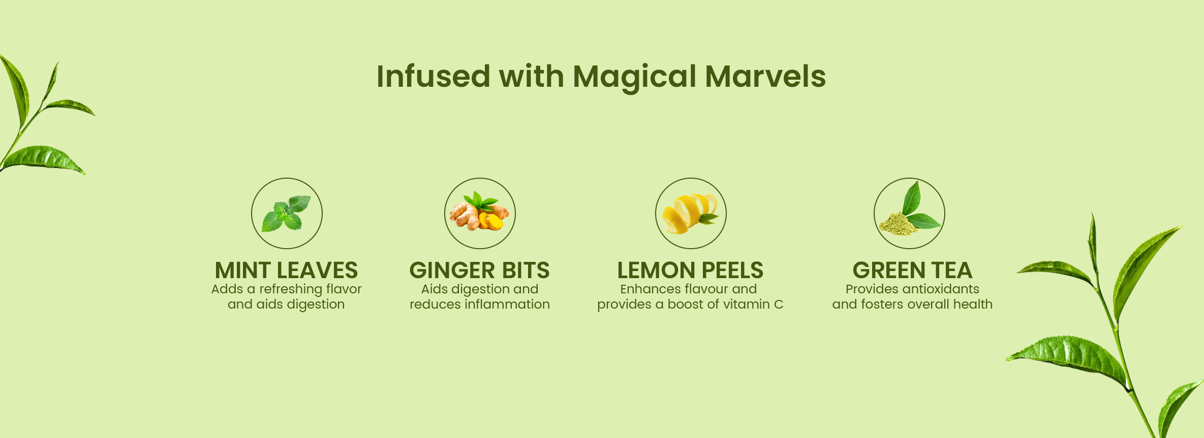 APSARA Lemon Mint Ginger Green Tea | Herbal Tea For Immunity Boosting, All Natural Flavour, Zero Calories - Improves Metabolism & Reduces Waist